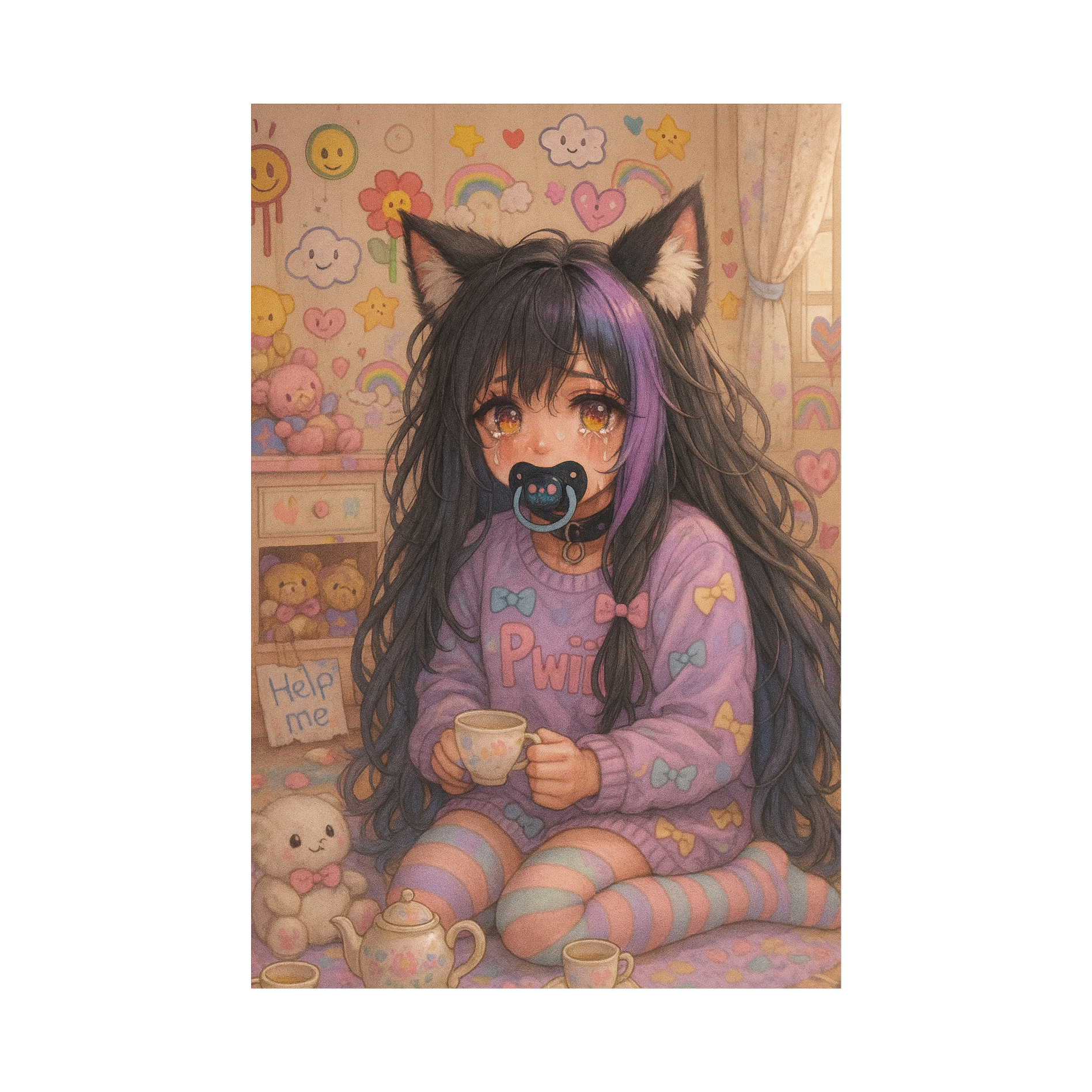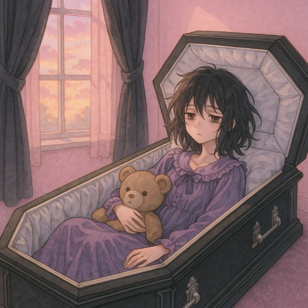 Alt Pop, Babycore, Music Box, Creepy-cute synths, Playful Beats, Shy, sweet, female singer, charming ambiance, Dark Bubblegum Pop, Yume Kawaii, melancholic lullaby, haunting nursery rhyme, baby piano