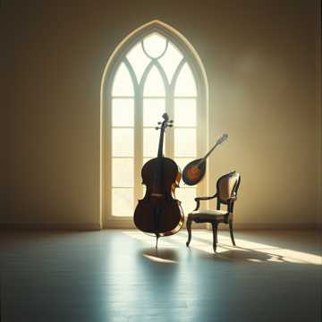 Slow but emotional and nostalgic baroque music on cello and mandolin in the style of Vivaldi, It should promote the feeling of quiet well-being and sound mantra-like, The sound should be spacious with good amount of bass but not overwhelming, and with natural reverberation