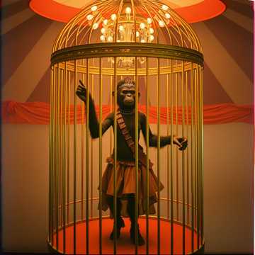 An avant-garde jazz and grotesque dark cabaret piece opens with fierce tribal drumming, bongo rolls, and eerie chants, segueing into a megaphone-filtered monologue by a deep, serpentine male vocal, Dissonant jazz piano, sliding trombones, muted guitar stabs, and upright bass spin a warped, off-kilter swing groove, Frequent chaotic brass breaks and tribal interludes punctuate the track, weaving decadent, deranged textures with theatrical, rhythmically volatile crescendos