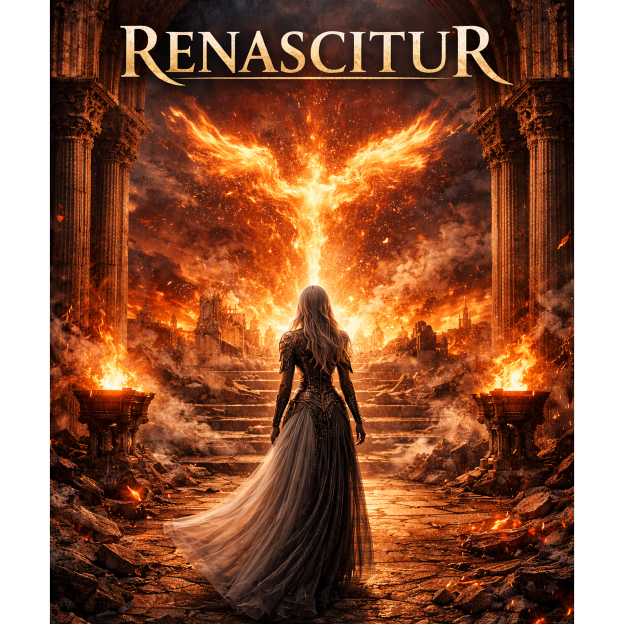 cinematic orchestral anthem, dark emotional epic, slow burn orchestral pop, dramatic film score atmosphere, minimal verses with explosive emotional chorus, female lead vocal with a clean and controlled soprano tone, pure and focused vocal color without grit or distortion, clear and forward vocal presence, emotionally restrained but powerful delivery, strong sense of inner tension rather than aggression, smooth legato phrasing, long sustained high notes with stability and control, expressive vibrato used sparingly, voice that feels fragile yet resolute, not airy or whispery but present and grounded, cinematic vocal style that cuts through the orchestra without overpowering it, dominant emotional violin lines, rich orchestral strings, war drums and taiko-style percussion used sparingly for impact, dramatic dynamic contrast, tension build-up followed by emotional release, sorrowful yet defiant atmosphere, spacious and atmospheric production, modern cinematic soundscape