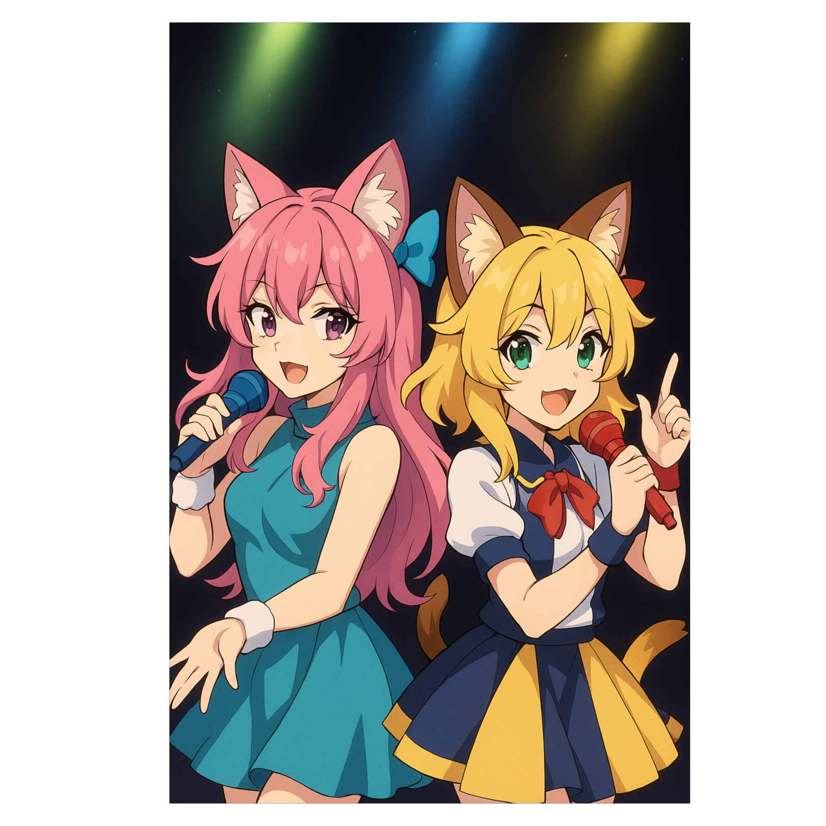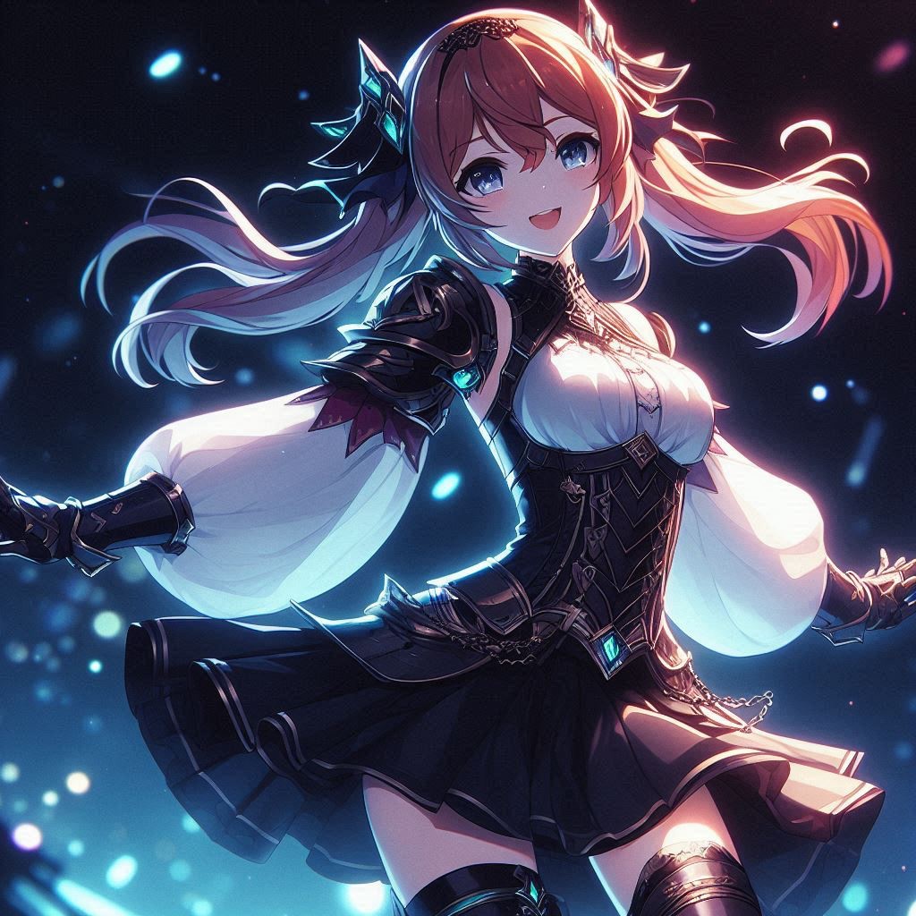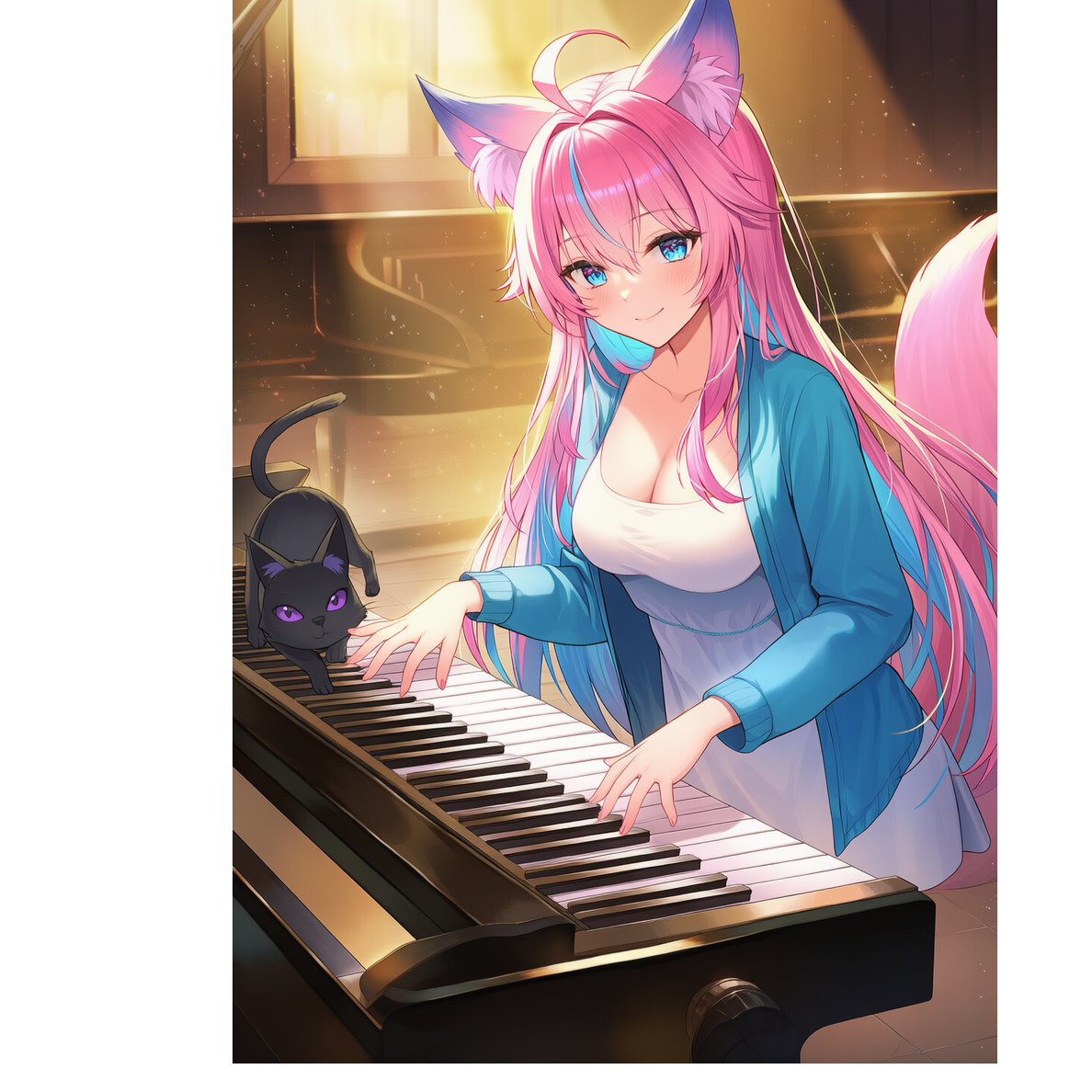 anime J-pop/anisong track, gentle piano and strings introduction, leading into heartfelt playful cute female vocals with soft vibrato, dramatic strings, emotional guitar riffs, and a soaring chorus, layered harmonies, and emotional intensity, Lyrics should blend Japanese and English, with themes of fate, love, and fighting spirit, Epic, dramatic, and uplifting