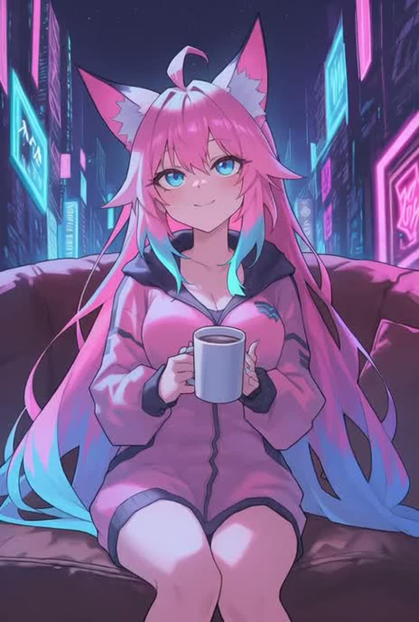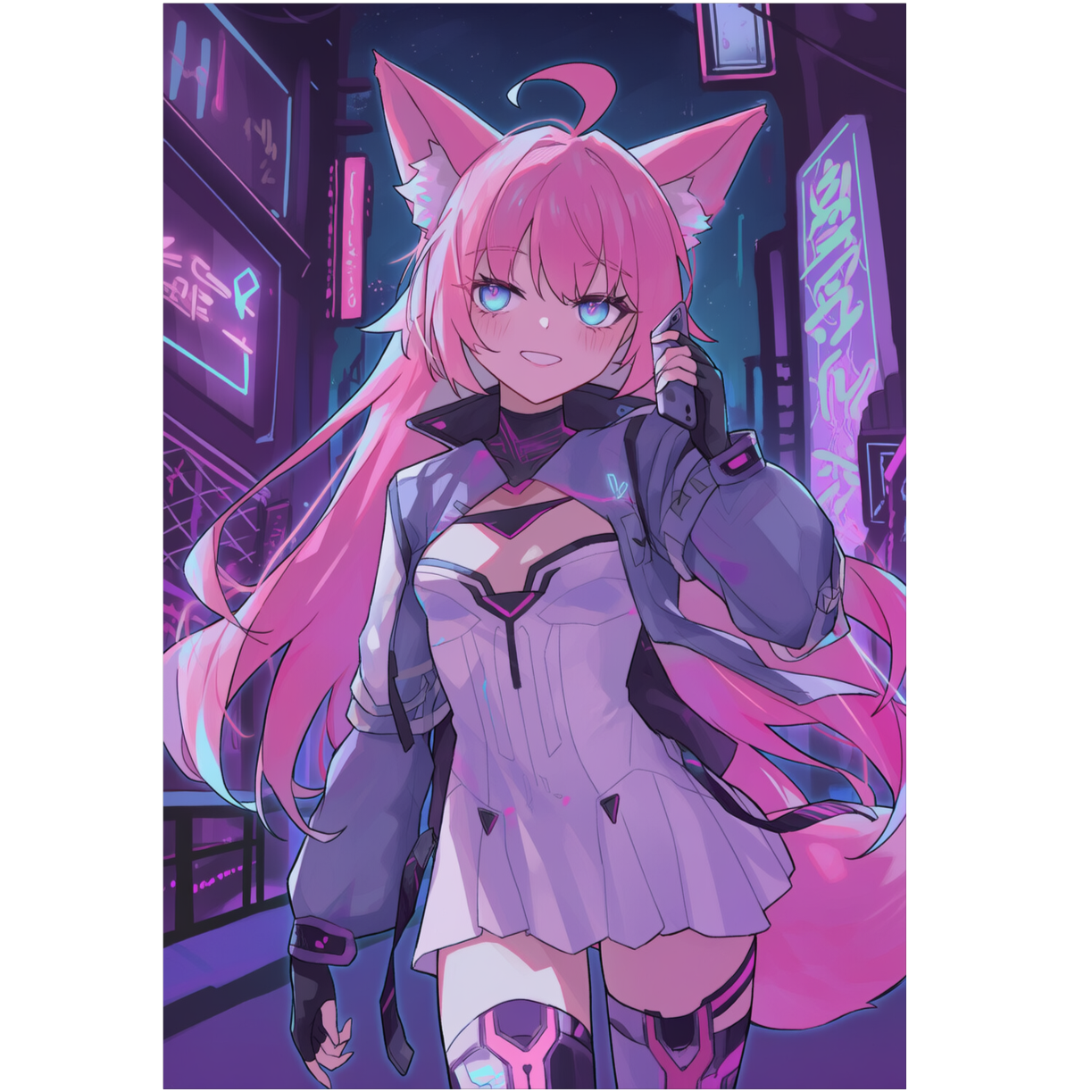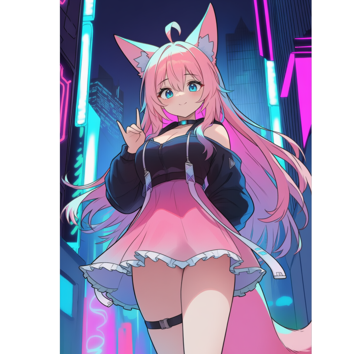vintage synthesizers, Hypnagogic+(gumbe)+Moombahton; female vocal, vaporwave, plunderphonics, A retro-futuristic scene with synthwave aesthetics, neon lights, and cyberpunk Tokyo