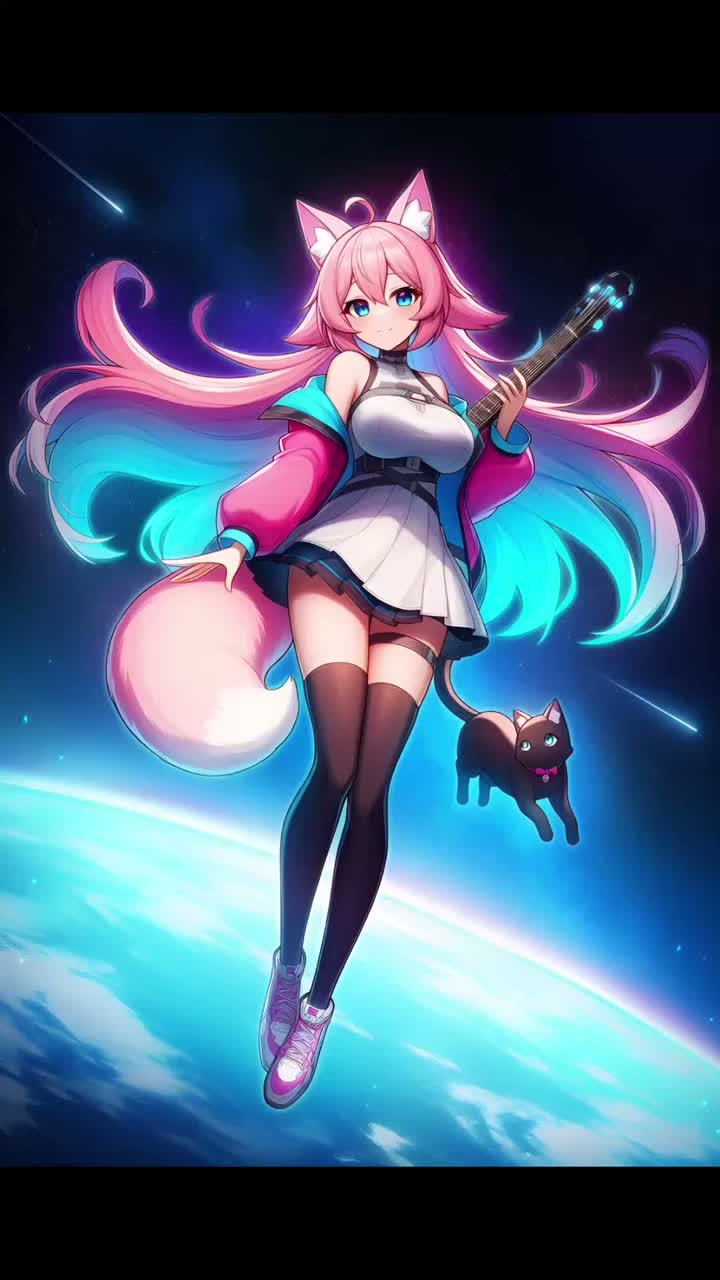 anime ending song, hyperpop remix with glitchy synths, djent, groovy bass, math rock, vintage synthesizer, shogaze, shred guitar solo, progressive, autotuned female vocal, maximalist mix, club-ready bounce, digital overload with a futuristic twist