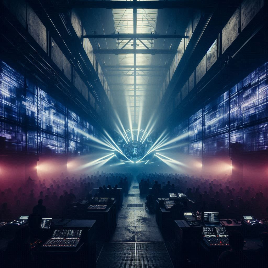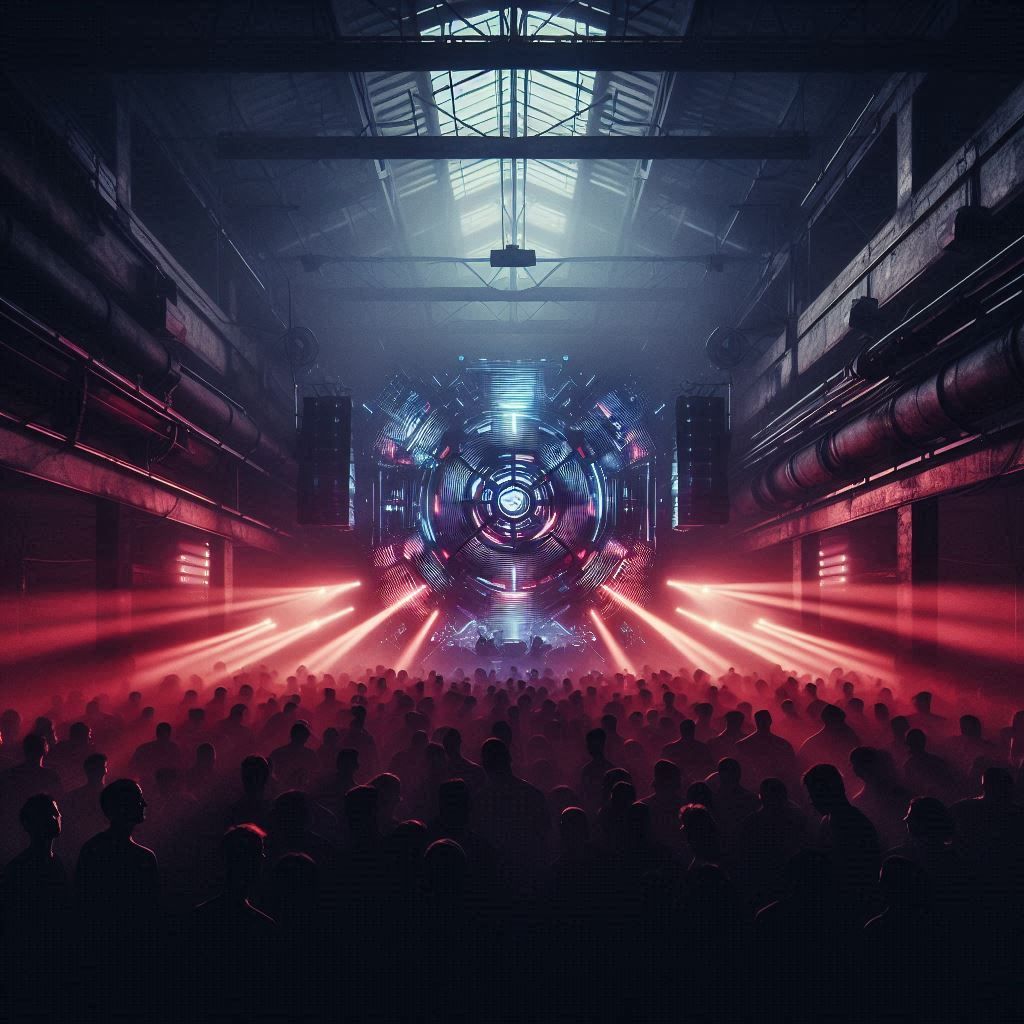 Hard Techno German Hardstyle Trance Fusion, 145 BPM, pounding kicks, euphoric synth leads, industrial atmosphere, distorted bass, metallic percussion, trance arpeggios, acid elements, driving relentless energy, atmospheric pads, reverse bass, dystopian euphoria, no vocals, warehouse festival sound, maximum intensity