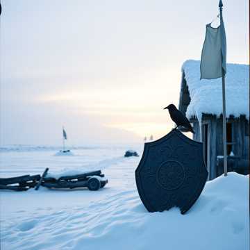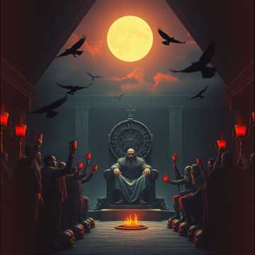 Style: Viking folk verses with soaring clean gang vocals → crushing death metal choruses with guttural roars and blast beats, Instruments: Tagelharpa and bowed lyre carry the melody, joined by pounding war drums, distorted guitars tuned to open C, and a low-throated horn that sounds like a dying mammoth