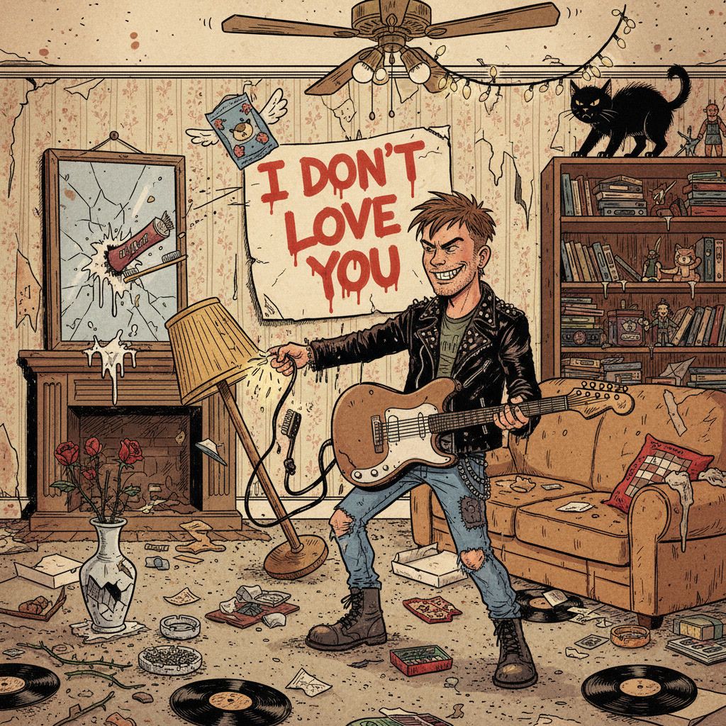 Male vocal — deep, confessional, erupting into raspy melodic shouting in the chorus, Delivery feels intimate, like reading a diary out loud but through clenched teeth, Mood: Resentful yet vulnerable — the sound of someone refusing to commercialize love or grief, Atmosphere: Dimly lit bar at midnight, smoke curling above half-empty glasses, Raw emotion dressed in distortion and regret