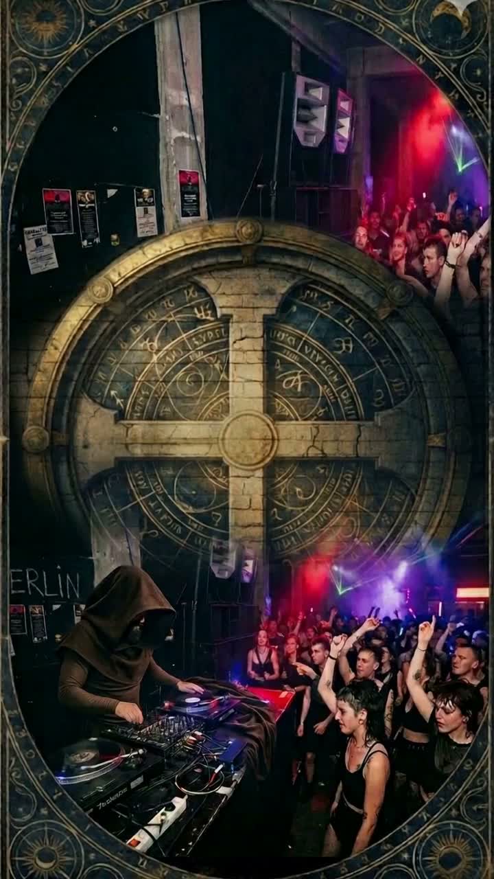 Generate a dark, textured Berlin 2026 tech‑house track with industrial percussion, minimal grooves, metallic hits, and deep resonant bass, Add subtle ambient pads, glitch effects, and evolving textures, Layer SFX like machine hums, mechanical clicks, echoing impacts, filtered sweeps, distortion bursts, and metallic rattles to enhance atmosphere, Maintain a hypnotic, driving rhythm for a late-night warehouse floor, Include sparse melodic motifs and evolving sound layers to make the track edgy, immersive, and experimental while staying danceable