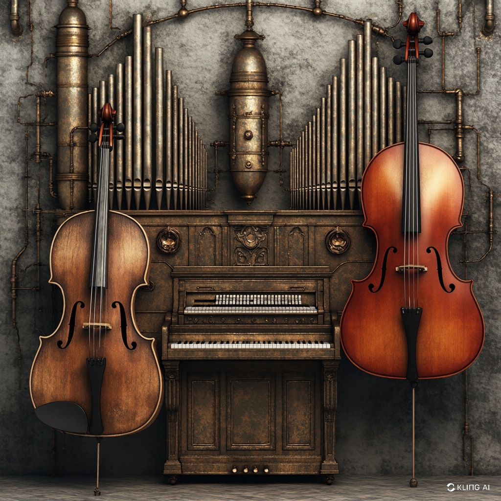 Industrial Steampunk x Violin x Cello x Piano x Martial drums x harpsichord x Church organ