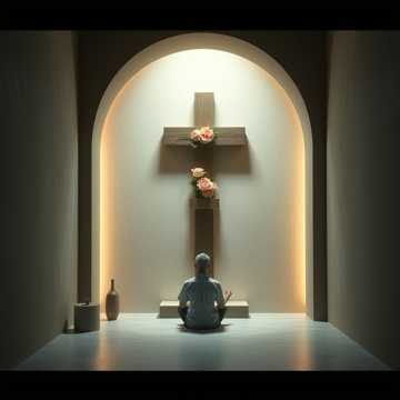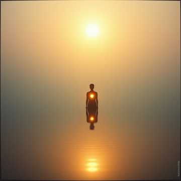 Ritual ambient healing interlude with sacred cinematic and spiritual minimalist aesthetics, centered on the author’s own voice persona as main transmission, Mood deeply contemplative, initiatic, reverent, intimate and transcendent, Very slow tempo (40–60 BPM), suspended timeless feeling, no rhythmic drive, Harmony minimal and modal, slow evolving drones, sacred tonal colors, unresolved but peaceful, Instrumentation: deep ambient pads, low harmonic drones, subtle string swells, distant organ or harmonium, soft choral textures, very light bell or bowl tones, breath and air textures, no percussion, Healing sound design: long immersive reverbs, harmonic overtones, binaural-style textures, silence between phrases, vibration for nervous system regulation and emotional integration, Vocals: spoken word and whisper delivery, extremely close mic, natural timbre preserved, warm low-mid emphasis, breath audible, minimal processing, subtle doubles like inner or higher-self voices