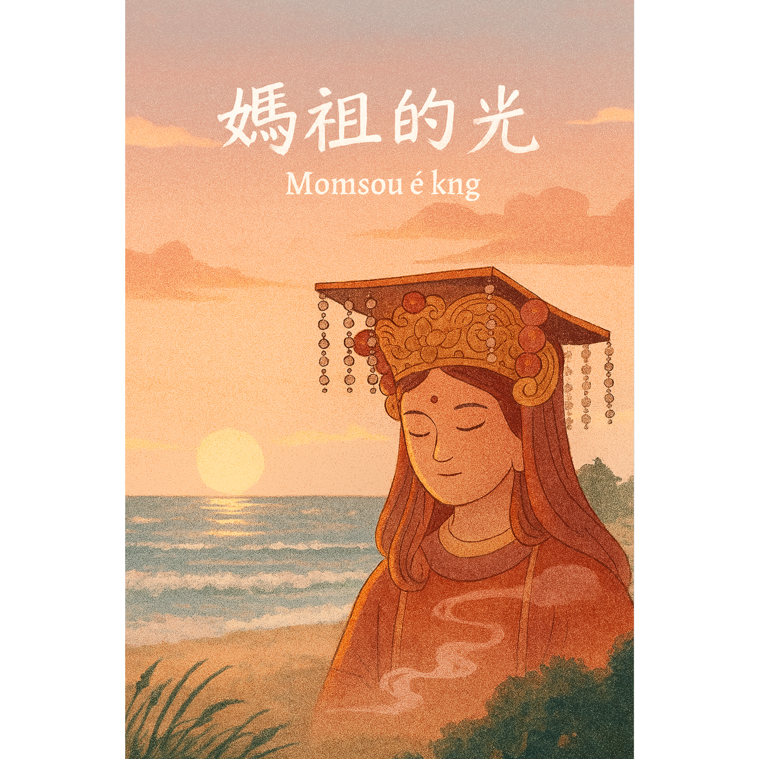 A soulful R&B groove blended with Dream Pop and Soft Rock, enriched with cinematic and spiritual atmosphere, The sound carries both mystery and reverence, with touches of epic soundtrack and folk sensibility, Inspired by Taiwanese coastal rituals, temple incense, and the protective presence of the sea goddess Mazu, Mood / Atmosphere: