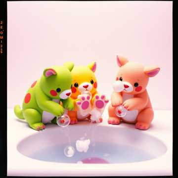 coustic guitar, soft piano, fun percussion (claps, snaps), childlike sound effects (school bell, scribbling, laughing, water splashes), 🗣️ Voice: clear, bright female voice, with child chorus repeating or echoing comparisons (“I brush / I’m brushing”)