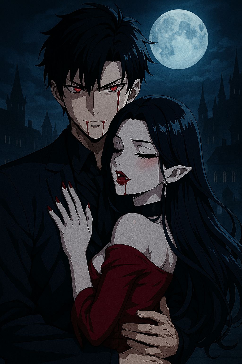 Cinematic trap meets melodic rap with haunting harmonies, layered vocals, atmospheric pads, and a dark, seductive vampire vibe, blending smooth melodies with intense, dramatic energy