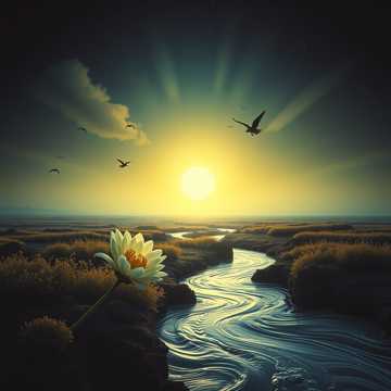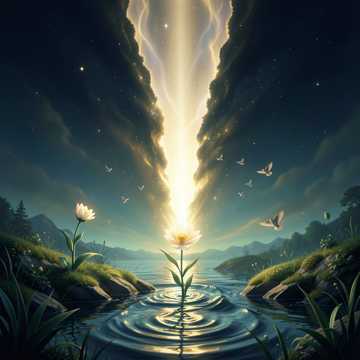 pro quality cinematic ambient orchestral electronica, spiritual creation soundscape, mature warm ethereal female vocals with gentle breath and reverence, vast evolving orchestral arrangement that slowly grows from silence, rich organic sound design where nature sounds gradually appear as God creates: starts almost completely silent, then soft cosmic wind, flowing water, distant thunder, birds singing (different species entering one by one), leaves rustling, insects, gentle rain, very detailed and immersive, neoclassical meets modern ambient electronica, warm glowing pads, subtle crystalline synth textures, deep cinematic strings and soft horns, slow majestic build, emotional and awe-inspiring, high quality pro production, spiritual and transcendent atmosphere