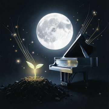 Cinematic ambient score with slow piano arpeggios, distant string pads, and a soft brushed percussion pulse; verse-like opening stays nearly bare with only felted keys and room tone, middle section widens with aching cello swells and reverse-piano transitions, final stretch thins back to solo piano and haloed sustains, Breath-like reverb tails, gentle rain-texture fx, and a long pre-cadence swell before each emotional turn, Wide, intimate, and sorrowfully polished
