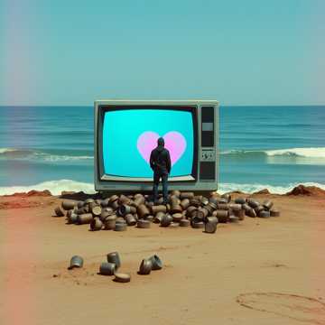 A downtempo alt-rock track at 95 bpm in D minor, led by a thick distorted synth bassline and dusty MPC-style drum machine beat, Atmospheric vintage synth pads envelop melancholic processed male vocals, Subtle dub reverb effects linger, blending urban decay with virtual pop elements