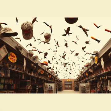 A comedic country ballad with honky-tonk swing, banjo, upright bass, and playful vocals, The lyrics tell the story of a chaotic brawl at a Bass Pro Shop grand opening, sparked by a restroom line argument, Style it like a ballroom tall tale with crowd laughter and comic timing, honky-tonk singalong with cartoon humor