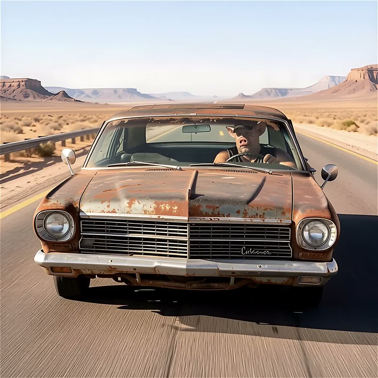highway drive atmosphere, minimalist, melancholic, 1980s neo-western score, shimmering heat haze, ethereal psychedelic outro, Early Delta Blues influence, heat!!