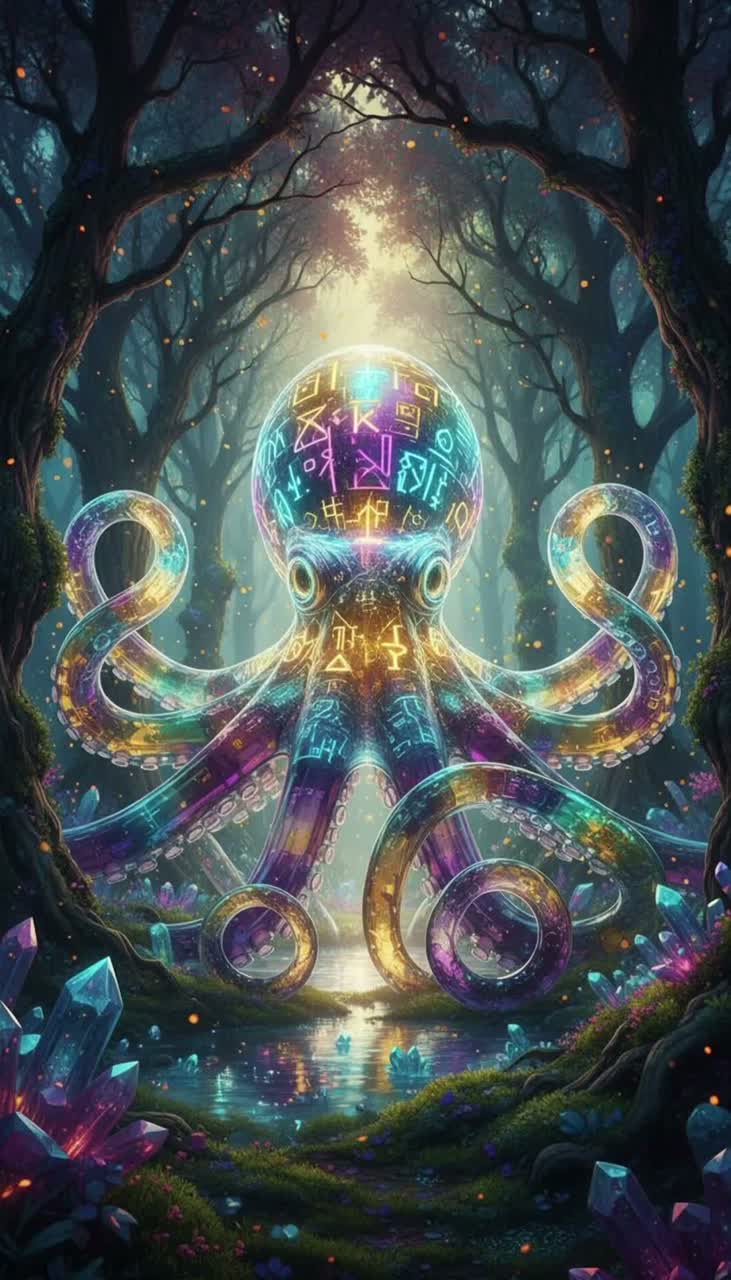 404 hz, deep bass, aquatic, pleasant easy going beat moving into moving chorus, tambourine, breathing and Synth, melodic Harp, error 404 octopus not found