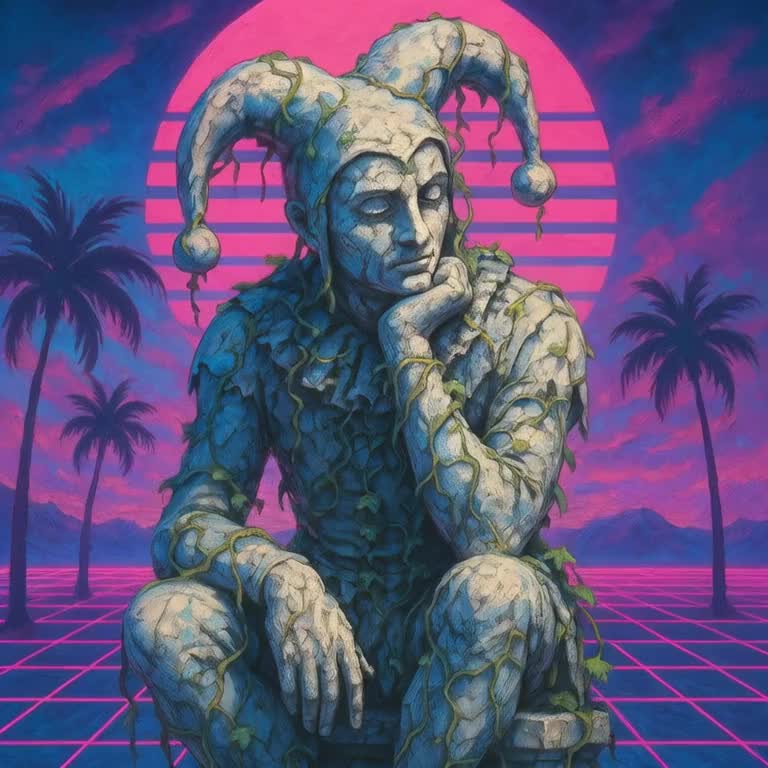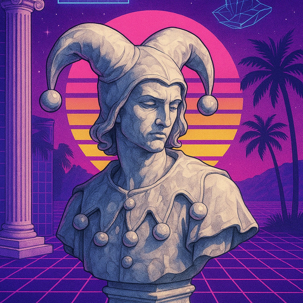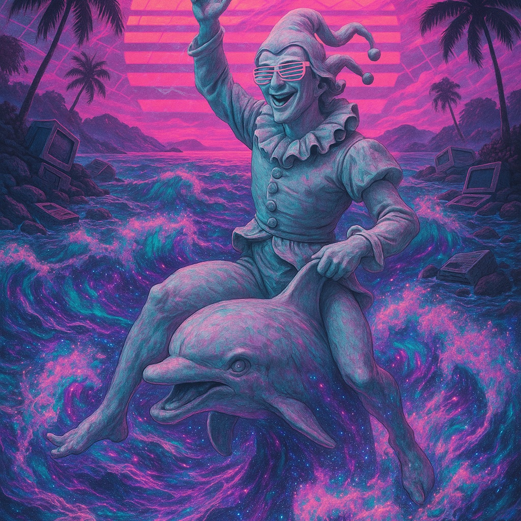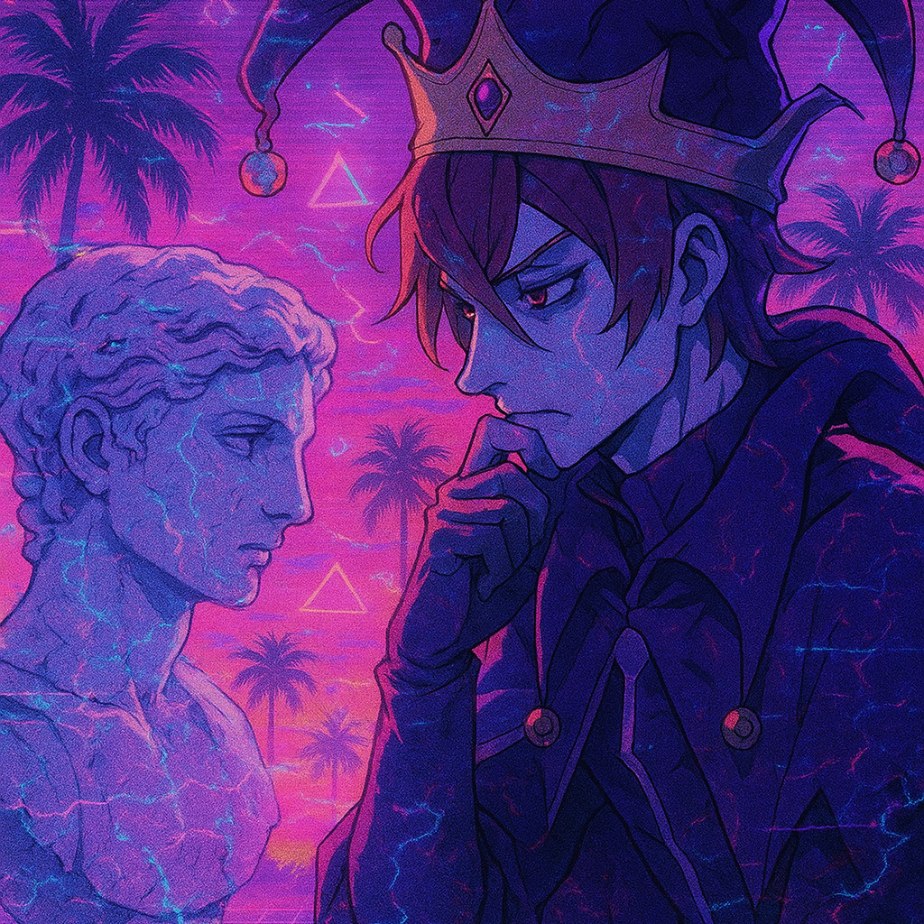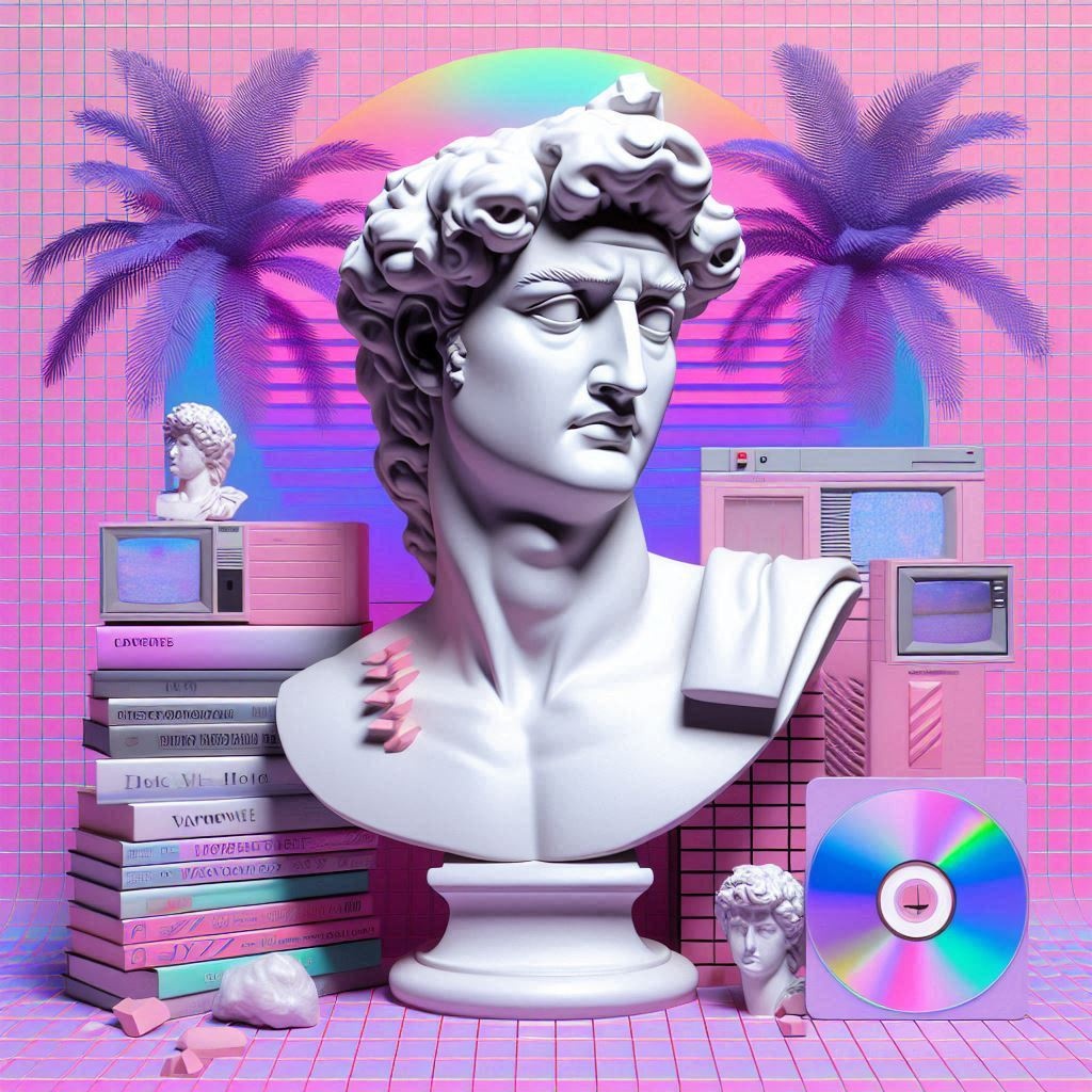 Vaporwave, hypnagogic drift, sampled audio, faux-utopian, future funk, vapormeme, slow, reverb, mellow, stoned, aesthetic, late-night lo-fi, ambient, surreal, relaxing, reflective
