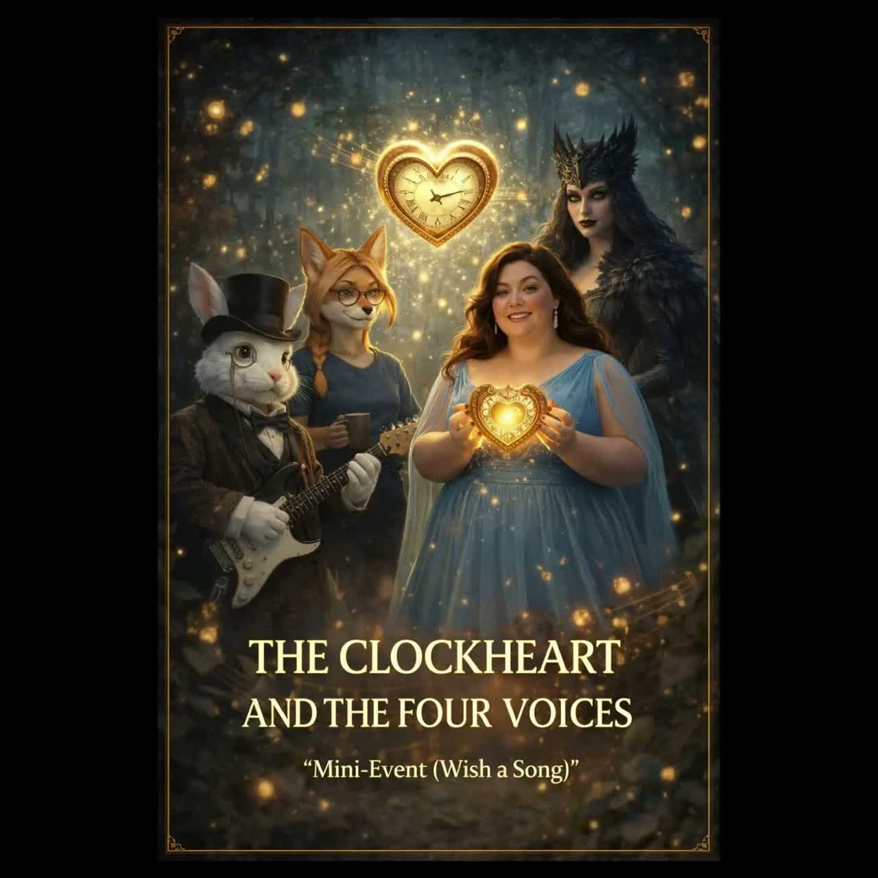 Fairytale chamber opera / musical ballad, orchestral + choir, Slow 66 BPM, gentle rubato in intro/interlude, Key: D minor with warm major lift in finale, ONE lead vocal only: female mezzo/contralto narrator who blends intimate close-mic spoken storytelling with operatic legato singing (no voice switching), Lyrics name the four characters repeatedly: Mr, Fluffy, Stadt Rotfuchs, Taja, Cheesecake, Arrangement: solo cello leitmotif (front, tender, legato), strings con sordino pads, harp slow arpeggios, celesta sparkles, oboe+clarinet light runs, soft French horns, Clock motif: pizzicato strings + muted glockenspiel “tick-tack”, minimal brush percussion, Choir: soft humming under chorus, fuller “ah/ooh” in finale, Mood: bedtime fairytale, whimsical, tender, magical, hopeful, Mix: wide hall reverb, vocals slightly forward, cello leading