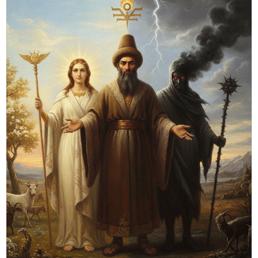 An orchestral piece unfolds with intricate melodic lines, lush violins carrying the main theme against bold trumpet flourishes, Deep drums drive the dynamics, while interwoven Persian Banu women chanting provides an ethereal, hypnotic counterpoint to expressive German lyrics throughout