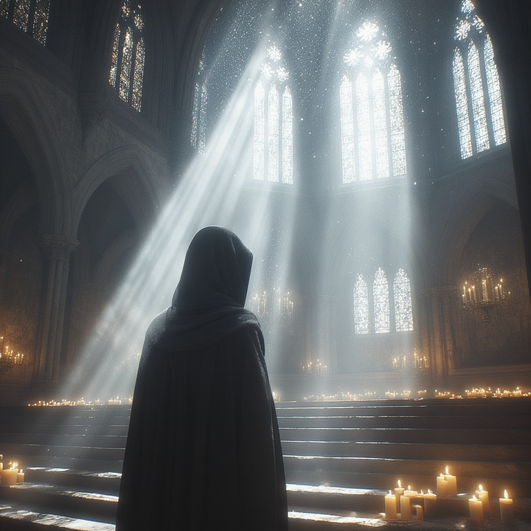 A contemplative ethno-ambient choral piece in the Dorian mode (D–D), carried by pure a cappella vocals combined with atmospheric layers of sound, Gently flowing synth pads, distant water sounds, and soft shakuhachi flutes frame Latin voices that breathe in rubato-free time, The tempo hovers between 60–90 BPM; the pulse is organic, like a heartbeat in the mist, Sacred depth meets meditative vastness—Gregorian chant merges with mystical ambient to evoke a sense of inner eternity, The space sounds like an abandoned temple in the wind: every note breathes silence, every echo recalls forgotten prayers, Spiritual, introspective, transcendent