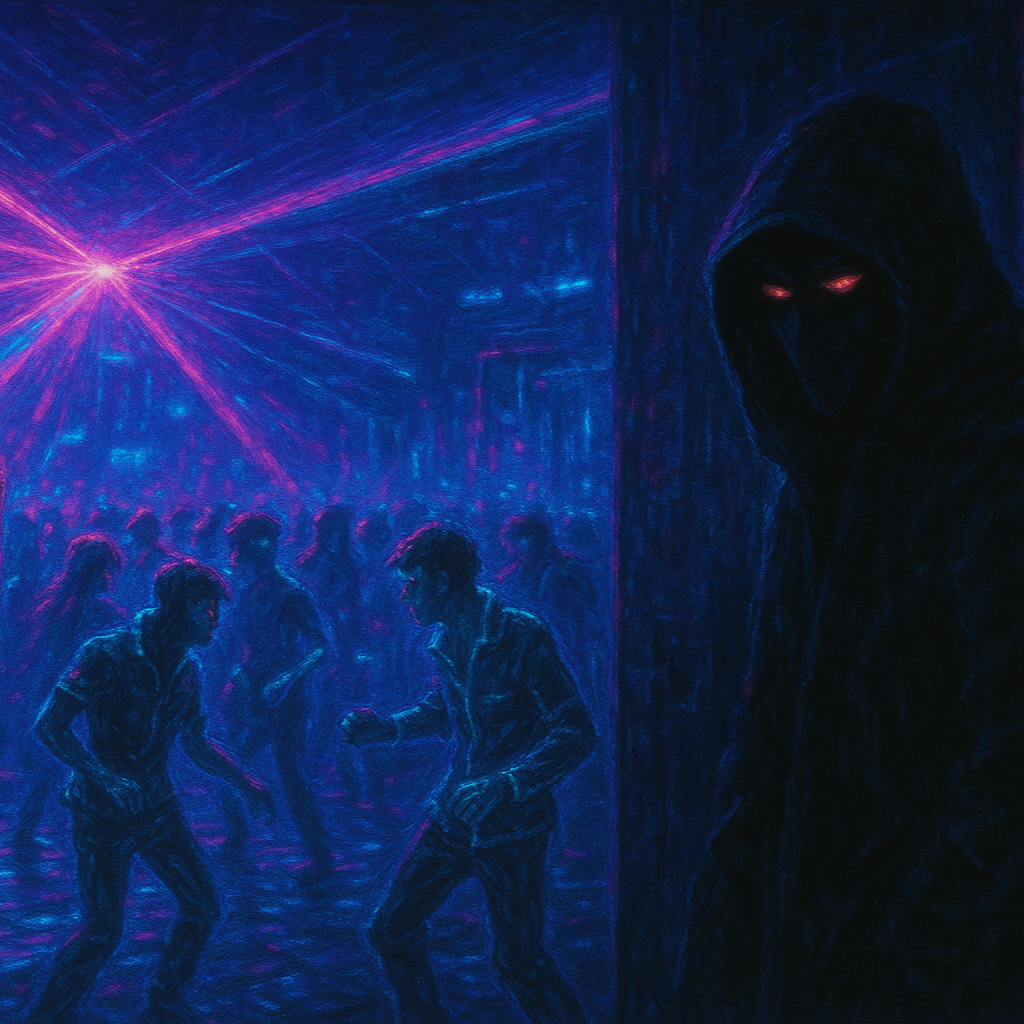 Layers of pulsing dark-wave synths merge with hypnotic afrobeat percussion and a deep four-on-the-floor techno kick, Dirty disco phonk bass and wah-guitar provide groove, while sharp Texas blues licks cut through the midsection, The arrangement ebbs and flows with dynamic drops and gritty, saturated breakdowns, fusing electro textures with funky, soul-driven instrumentation