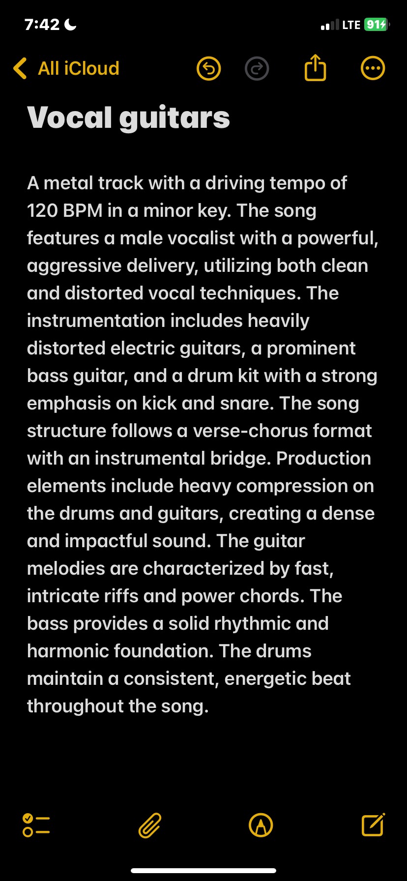 A metal track with a driving tempo of 120 BPM in a minor key, The song features a male vocalist with a powerful, aggressive delivery, utilizing both clean and distorted vocal techniques, The instrumentation includes heavily distorted electric guitars, a prominent bass guitar, and a drum kit with a strong emphasis on kick and snare, The song structure follows a verse-chorus format with an instrumental bridge, Production elements include heavy compression on the drums and guitars, creating a dense and impactful sound, The guitar melodies are characterized by fast, intricate riffs and power chords, The bass provides a solid rhythmic and harmonic foundation, The drums maintain a consistent, energetic beat throughout the song