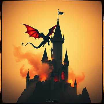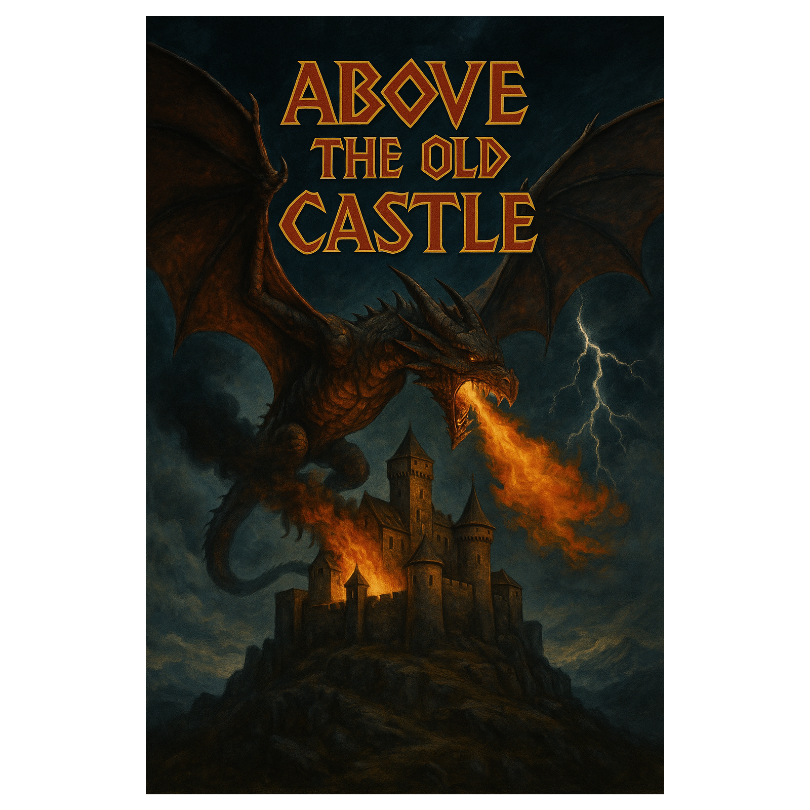 "Epic heavy metal storytelling, Fast galloping basslines, twin lead guitar harmonies, and powerful riffs with a medieval dark fantasy vibe, Soaring high-pitched vocals with dramatic phrasing, echoing, Driving double-kick drums with fills and solos, An extended guitar solo section with twin harmony guitars, Atmosphere should feel mystical, theatrical, and battlefield epic — like a medieval dragon battle above a burning castle