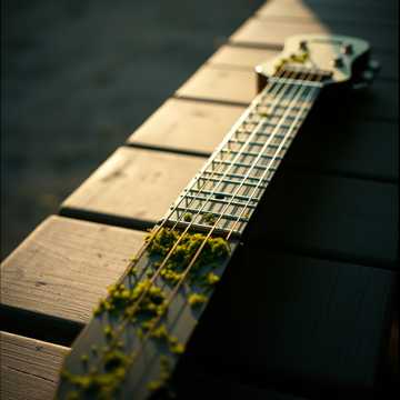 A guitar piece in a minor key, likely G minor, played at a moderate tempo of approximately 100 beats per minute, The guitar features a clean, dry tone with no discernible effects, suggesting a direct recording or minimal post-processing, The performance style is fingerpicked, emphasizing individual notes and creating a delicate, intricate texture, The melody is melancholic and introspective, characterized by descending lines and sustained notes, There are other instruments present, The dynamic range is relatively consistent, maintaining a soft to medium volume throughout, The piece lacks a clear verse-chorus structure, instead flowing as a continuous instrumental narrative, The production is straightforward, highlighting the natural resonance and articulation of the guitar
