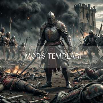 Medieval cinematic epic blending solemn Gregorian chant with dark orchestral elements, The track evokes the holy zeal of the Knights Templar — a reverent crusade underscored by haunting strings, war drums, bells, and pipe organ, The mood evolves from sacred devotion to ominous intensity, revealing the grim justification of brutal deeds in the name of God, Featuring Latin-only lyrics and a powerful recurring chant, this composition channels the sacred and the sinister, unfolding a tragic, immersive narrative of faith twisted into fanaticism