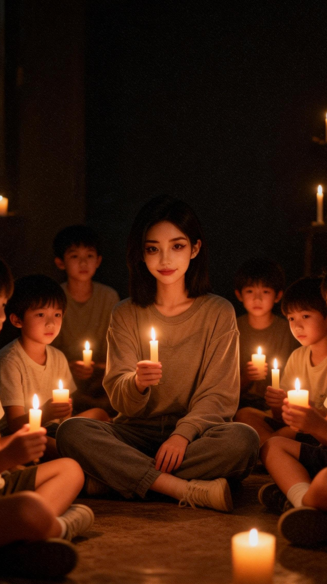 Studio-style recording with acoustic foundation and natural, intimate ambience, Slow to moderate tempo, steady and organic, gently breathing as a group rather than reacting to a live crowd, Instrumentation remains supportive, leaving space for lead vocals and layered group vocals, Dynamic build from quiet, close verses to wide, shared choruses, Group voices grow gradually throughout the song, creating a sense of togetherness without performance noise, Overall mood: warm, hopeful, collective, uplifting, Goal: a feeling of connection and shared light, as if many voices sing together in one space, No live performance, no stage, no audience noise
