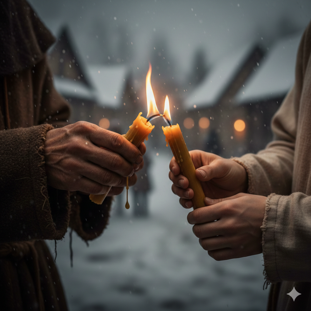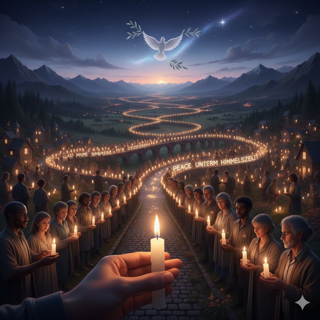 Themes: light shared, hope, peace, unity beyond borders