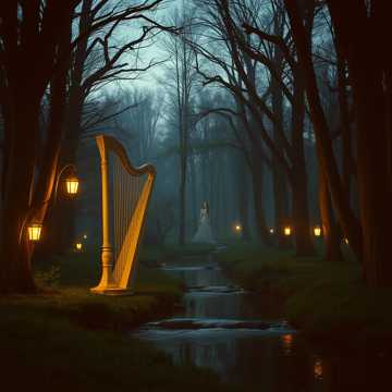 medieval celtic slow intimate folk with harp and flute cello and lute, High voice female vocalist with angelic voice, [Intro] Harp Lullaby Gentle Ancient Whispers