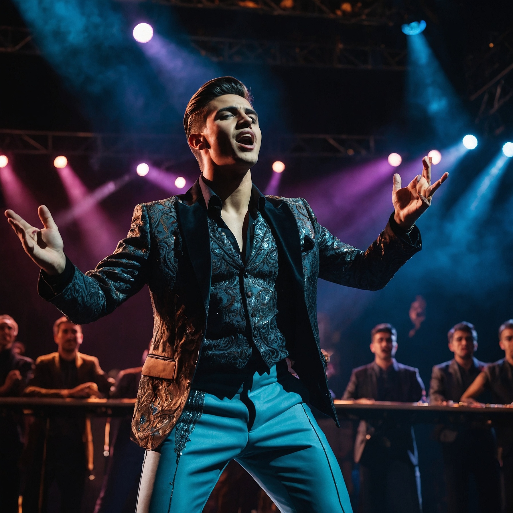 Male Vocal, A 90s and 2000s Turkish Pop sound blended with Middle Eastern and Balkan melodic influences, Upbeat pop songs with catchy choruses, electronic drum machines, funky basslines, oriental string instruments (like oud and bağlama), and lively synthesizers, Incorporates romantic slow ballads with emotional vocals and lush string pads, Occasionally mixes Eurodance/Club Pop elements, featuring rhythmic percussions, modern pop vocal melodies, and Eastern-influenced hooks, Suitable for both energetic dance tracks and sentimental love songs