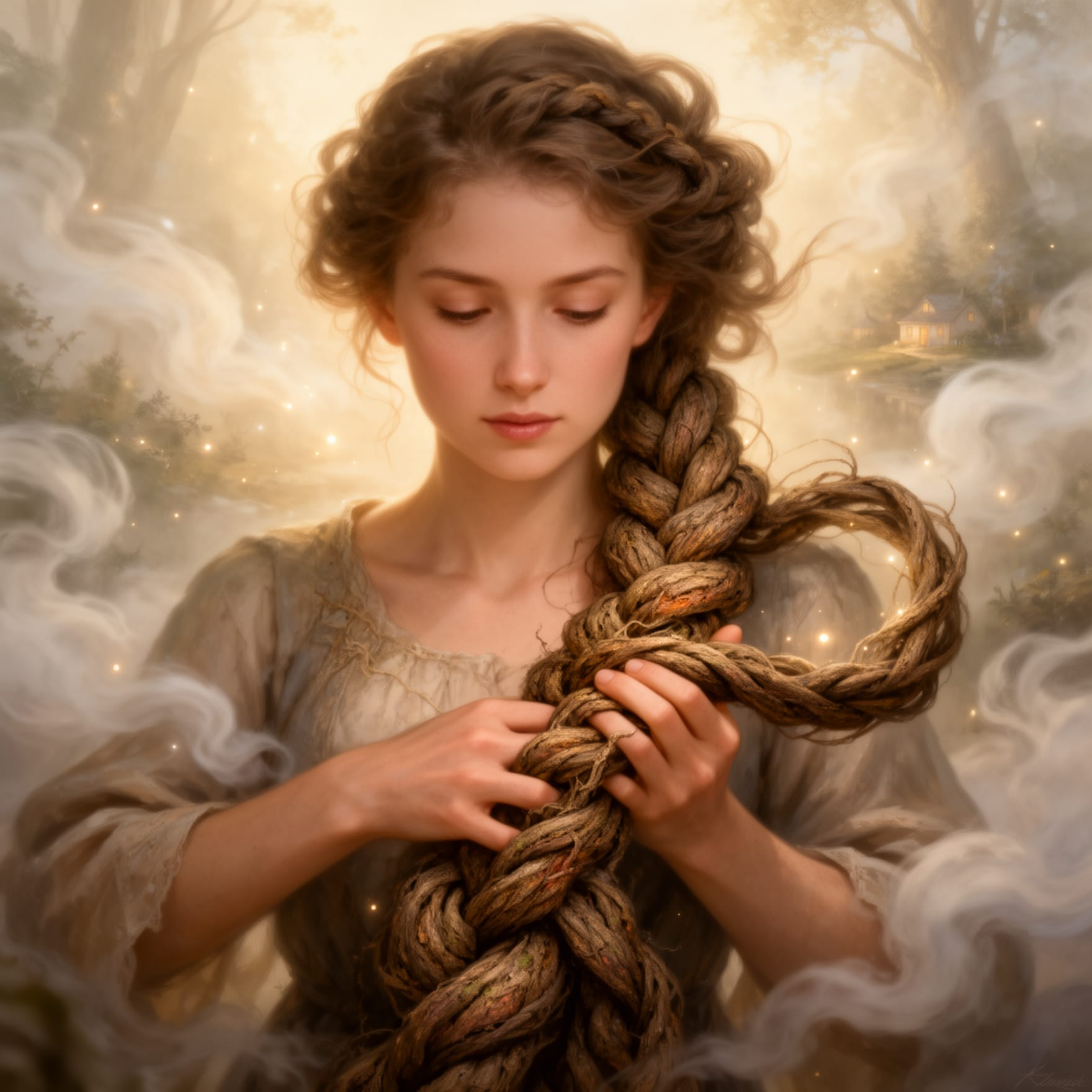 A soft witchcore / ritual electro track, Gentle, protective, and warm, Whispered female vocals like a lullaby spell, humming melodies, minimal but glowing synths, slow pulsing beat, hand-percussion, airy pads, The song feels like a magical blessing meant to protect the listener and spread positive energy, Tender, reassuring, intimate — as if sung close to your ear, Produced delicately, with care and restraint, BPM : 82, Tempo : Slow / Flowing, Key : D minor