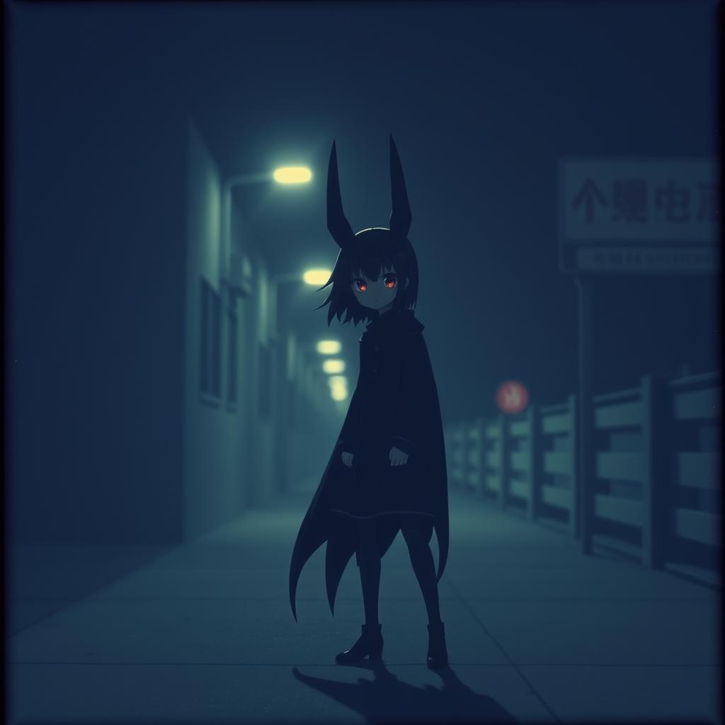 cute girl vocal, denpa, 疾走感, deep sub-bass, dark beat, rapid tempo, call and response