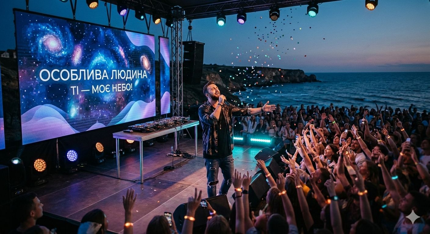 Custom lyrics in Ukrainian, male singer, tropical house remix vibe, dancefloor energy with romantic soul Романтичний тропікал хаус з елементами мелодік діп хаус, 124 BPM, ейфорійний нічний клуб вайб, тепла глибока суб-басова лінія, м'який пуншовий кік, марімба, сталевий барабан, повітряні педи, мелодійні арпеджіо, ейфорійні синтезаторні ліди, Глибокий чоловічий вокал, емоційний тенор, легкий автотюн і реверб, інтимний і потужний у приспівах, українська мова з чіткою вимовою, Тема: особлива людина, що приходить у життя, душа в небесах, щастя в кожній хвилині, посмішка як у дитини, серце — храм, крила за спиною, політ у коханні, Структура: атмосферний інтро з хвилями океану → грувовий верс → наростання → великий дроп з хуком "Особлива Людина!", ейфорія → брейкдаун з ніжним вокалом → фінальний дроп, [male vocals], [tropical house], [melodic house], [romantic Ukrainian lyrics], [emotional dance], uplifting, polished mix