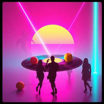 bass-boosted beats for a happy yet epic vibe, hard-synthwave, edm, techno, saxophone, happy, jazz, and low-bass cello, bright synth melodies layer over deep, beats, dance, techno-jazz, low, high-energy edm with a mix of live bongos, cello