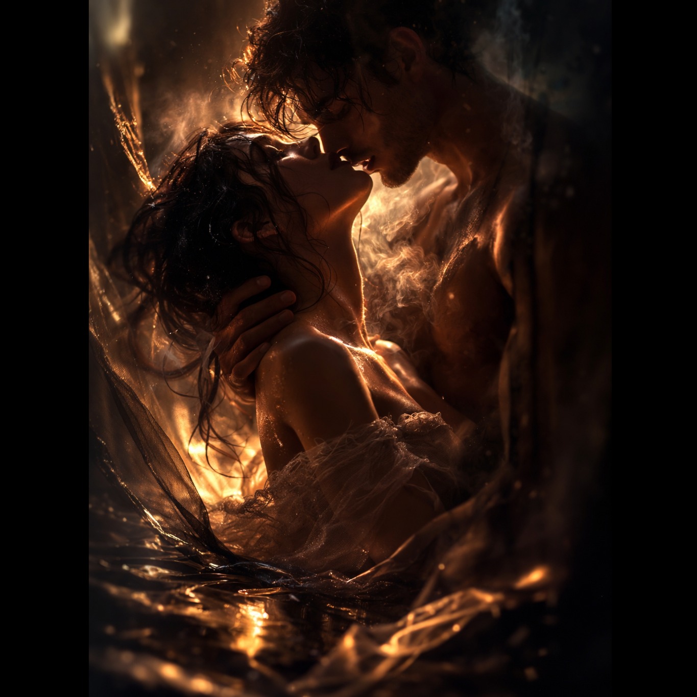 Cinematic trip-hop and dreamy downtempo blend with lush atmospheric beats and deep, pulsing bass, Ethereal synth pads drift beneath a male and female duet, their vocals weaving in and out, Delicate guitar textures float atop, evoking a hazy, laid-back beach house vibe