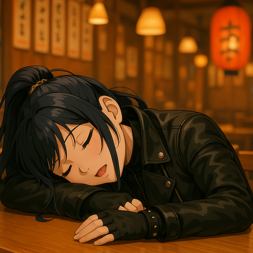 Dark energetic Freeform Hardcore and hip-hop fusion with syncopated breakbeats, 808 bass, atmospheric synth layers, and occasional distorted guitar stabs, Tempo 165 BPM, Key A minor, Female vocal is cool and close in verses, theatrical and powerful in choruses, with falsetto, vibrato, and rhythmic wordplay, Production emphasizes heavy low-end, loop-driven repetition, sudden drop-outs, and wide layered choruses, Theme: urban night survival and rhythm as obsession, with wordplay blurring English and Japanese sounds