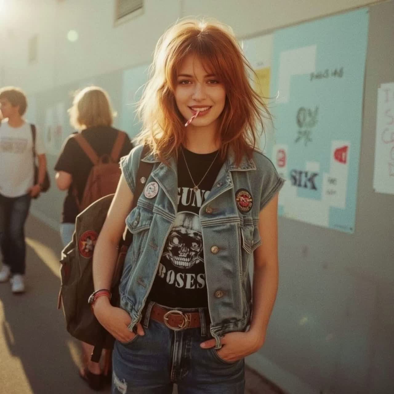 1983, A bold, emotionally charged retro-pop anthem with modern edge, Female vocals that blend confidence and vulnerability — part power, part whisper, The beat is steady but dramatic (around 95 BPM), with synthwave textures, echo effects, ambient guitar riffs, and a rebellious, cinematic feel, The chorus should be anthemic, with layered call-and-response vocals and echo (“so bold, fr fr”), while the bridge is spoken softly, like an inner monologue, Outro fades out with whispered lines and looping “WOAH, WOAH, ” effects