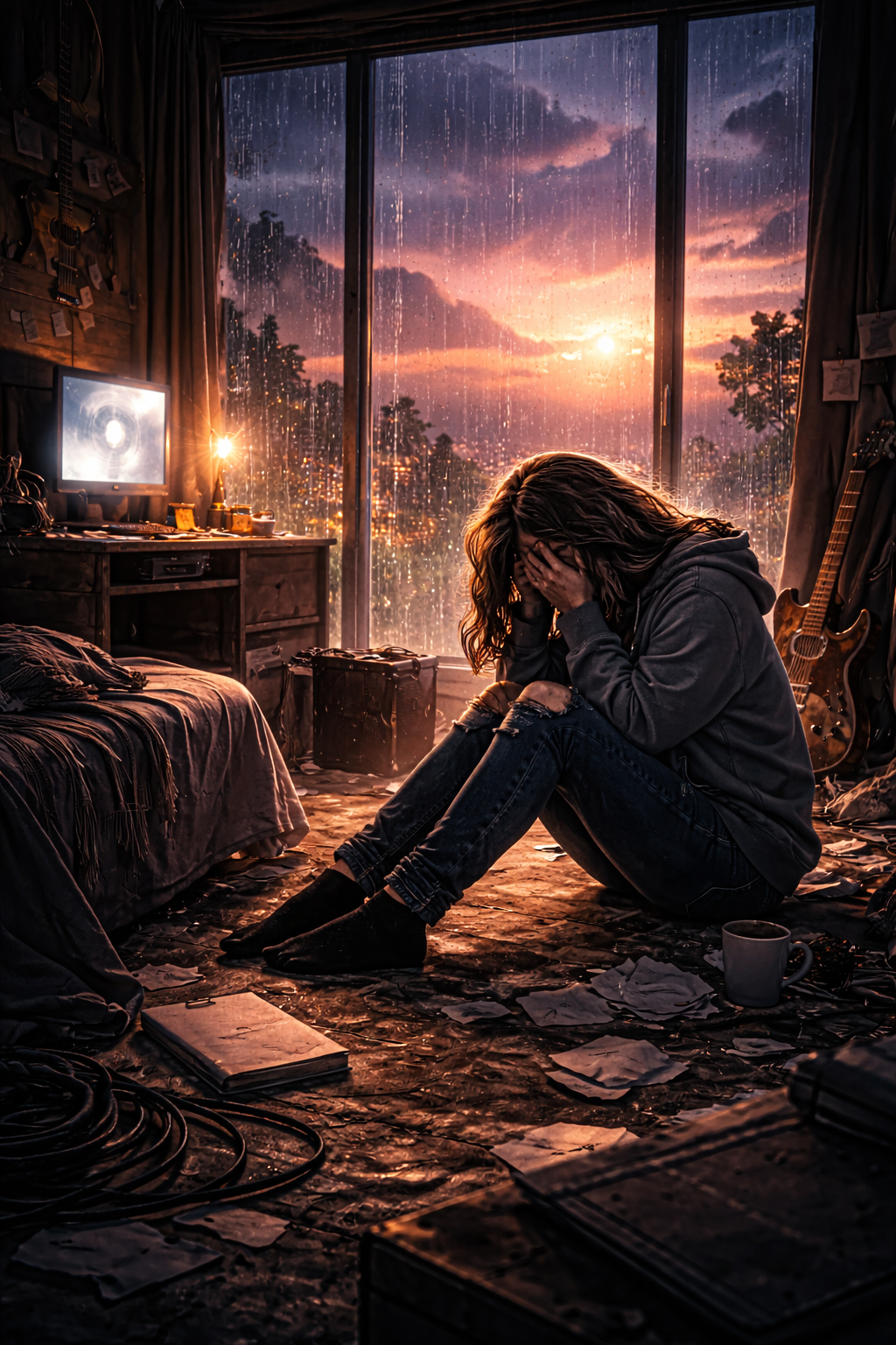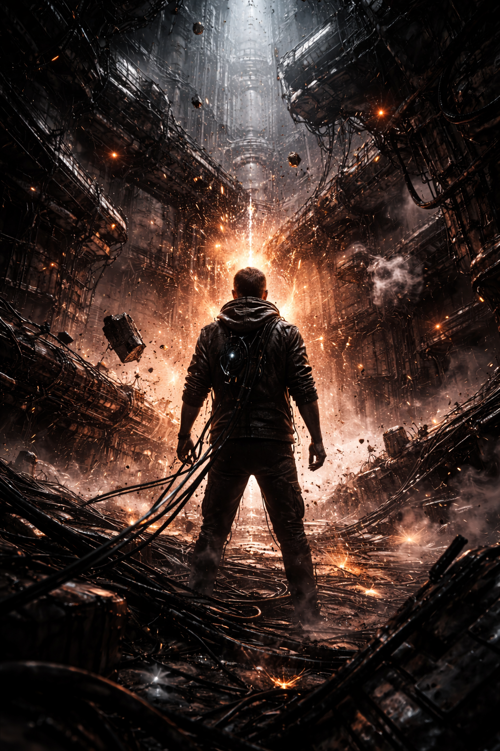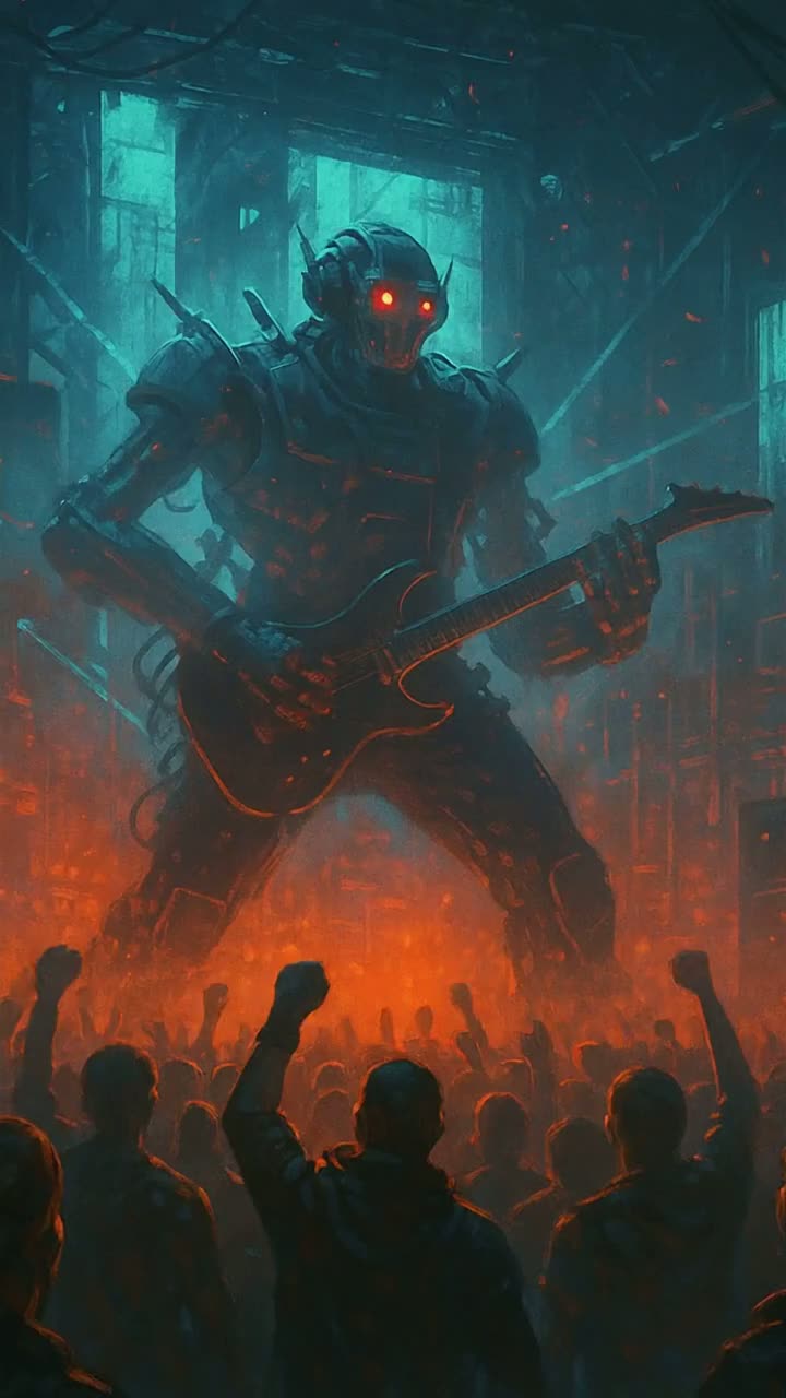 nu metal aggression, southern rock grit, drum and bass propulsion, industrial textures, mechanical pulse, distorted guitars, ritual restraint, cinematic heaviness