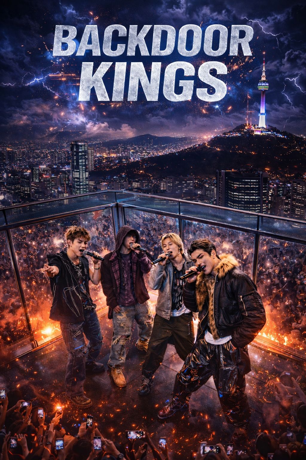150 BPM high-impact K-Pop trap fusion featuring distorted 808 subs, drill hi-hats, industrial bass stabs, cinematic brass hits, aggressive chant hooks, halftime breakdown switches, hyper-clean vocal layering, Korean rap cypher sections, stadium crowd shouts, glitch transitions, heavy sub drops, and festival-grade mastering engineered for arena sound systems and live performance impact