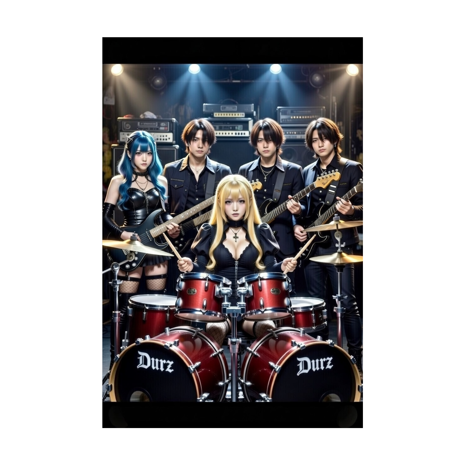 then 150 BPM, Twin high-gain guitars join—razor-sharp alternate picking, harmonized leads, wah accents left, thick fuzz right—then surge into a climactic shred solo with sweep picking and whammy dives, The outro blends fading, harmonized guitars for a lingering, adrenaline-fueled close, 憂鬱な, 少女の声