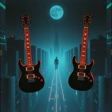 This progressive metal instrumental opens with low, bass-driven riffs and intricate polyrhythms that pulse with a dark futuristic vibe, Guitar leads shift between rapid-fire shred, tapping, and sweeping, layered with dense, syncopated rhythms, Texture evolves as synths and processed percussion create a dystopian feel, building into chaotic peaks and spacious breakdowns, all driven by a perfectly balanced, modern mix