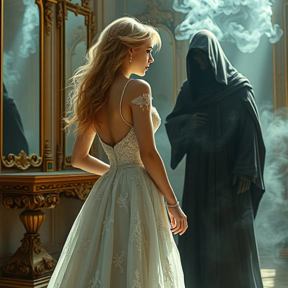 ambient intro, reverse synth textures, shimmering pads, glassy bells, dreamlike female vocals, gender-fluid themes, haunting vocal delivery, soft falsetto layers, minor key, cinematic transitions, echo delays, gliding basslines, melancholic piano, ambient pop, dream pop, surreal art pop, gothic synthpop, dark narrative pop