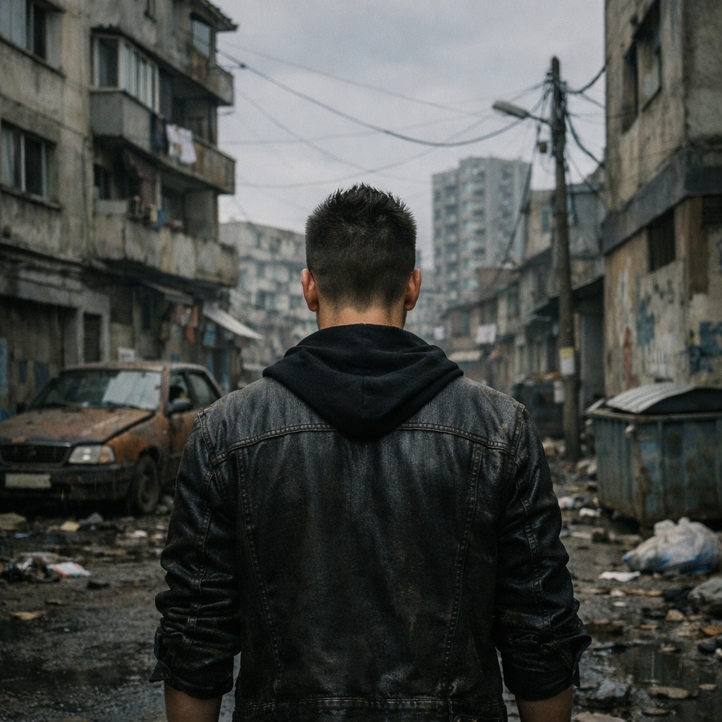 Melancholic Industrial Synth-Pop meets Cinematic Dark Wave, 120 BPM, Rainy night bus ride atmosphere, wet streets, distant neon lights, Dolby Atmos spatial, deep 33 Hz sub pulse, Instruments: Scrapyard hurdy-gurdy metallic drone, steel-wire cello, deep analog synth bass, industrial drums (oil drums + gated reverb snare), Vocals: Deep brooding male baritone with slight French-tinged English accent vs, rebellious soaring rock tenor - raw, gritty, emotional with intense high belts and passionate screams, Alternating verses, explosive infectious chorus that sticks like mental gum, Dark, anthemic, melancholic yet defiant