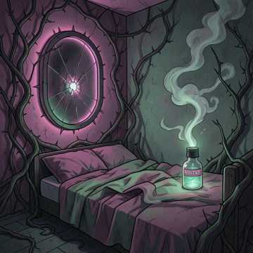 A dark, seductive synth-driven track with a restrained pulse, like a fading heartbeat, Set in A minor, with a steady tempo suggesting a slow descent, A deep synth bass drives the track, while shimmering pads create a cold, gothic atmosphere, A clean electric guitar adds delicate arpeggios, echoing like distant memories, Drums are tight - a solid kick and a snare with gated reverb that cracks sharply, evoking an 80s feel, Hi-hats keep a steady eighth-note pulse, The male vocal is intimate yet distant, lightly processed with reverb, Delivery is restrained but tense, balancing vulnerability and quiet desperation, Melodies are mostly syllabic, following the chords, Verses feel minimal and suffocating, while the chorus expands into something wider and more intense, No tempo or key changes - just a continuous, hypnotic descent, The mix is clean yet atmospheric, with vocals forward in a haunting space