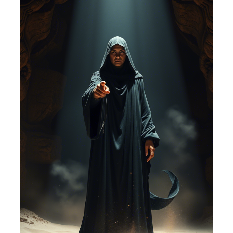 Dark epic cinematic track with a hypnotic and ritualistic atmosphere, Inspired by the Bene Gesserit from Dune, this track should feel intimate, mystical, and unnerving, Use low drones, reversed strings, glassy chimes, deep distorted synth pulses, metallic gongs, and ritual ethnic percussion, Add ambient wind and desert sand textures throughout, Vocal layers should include female whispers, chant-like harmonies, and sudden sharp Voice commands (distorted, center-panned, echoing), Dual vocals — whisper and clean singing — should feel trance-like, Include background phrases in Russian and a constructed language resembling Chakobsa, Structure the track with broken rhythm, unexpected pauses, cinematic silences, and swelling tension, Build the track like a secret ritual deep inside Wallach IX, where the Voice is used as a weapon of control, No heroic melodies — keep it raw, minimal, breathy, dark, Use reverb, echo, reverse FX, silence, and breathing layers to create tension and unease